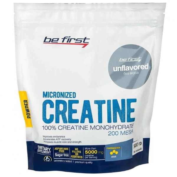 Creatine Micronized Powder Be First произведен с применением технологии микронизации, позволяющей получить измельченный порошок, частицы которого в 20 раз меньше, чем в стандартных продуктах, благодаря чему креатин проще растворяется в воде и лучше усваивается организмом, обладая наибольшей эффективностью.