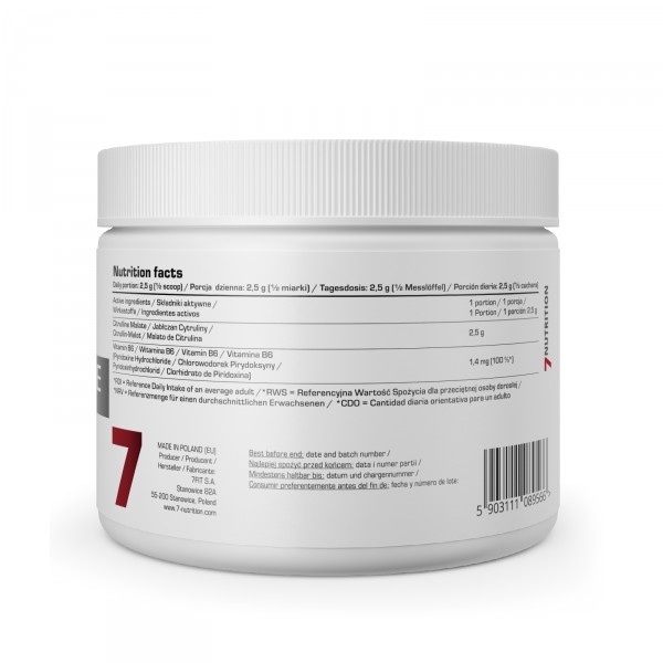 7Nutrition Citrulline Malate - эффективная добавка, которая подходит как для профессиональных спортсменов, так и для обычных людей, ведущих активный образ жизни. Его уникальная формула обеспечивает отличные результаты в тренировках и поддерживает общее здоровье.