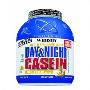 Day & Night Casein от Weider речь идет о казеинате кальция, который медленно расходуется и питает мышцы аминокислотами продолжительное время. Поэтому данный продукт рекомендуется использовать между приемами пищи, а также перед сном. Кроме того, он подходит для тех, кто иногда пропускает приемы пищи. Свойство казеината кальция медленно расщепляться способствует продолжительному питанию мышц и защищает их от катаболизма, одновременно создавая благоприятные условия для их дальнейшего роста.
